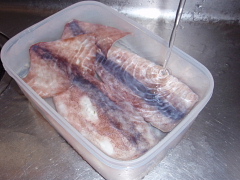 ●漬けたイカを流水で2時間塩抜き