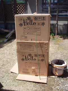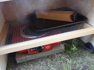 スモコ1号のつなぎ目のガムテープが温燻により温められ1段目の段ボールに食い込み高さが縮んだ。^^;;