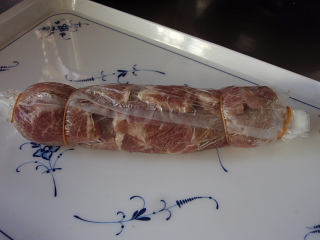 巻き終わるとこんな感じになるので端を輪ゴムなどで止め、冷蔵庫へ。