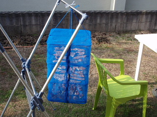 朝7:00〜日陰干し(表面は結構乾いている)、5時間後日なた干し30分 |