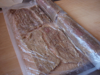 | 3 | 水気を拭き取り乾燥。ピチットで包み冷蔵庫へ(結果的に17時間冷蔵庫) |