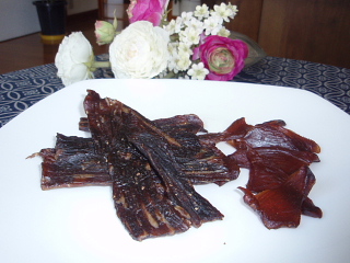 5mm程度の厚さに切った物は結構ビーフジャーキーっぽくなった。