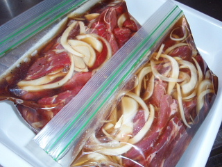 | 漬け液 | ソミール液500cc 玉ねぎ中1個(薄切り) ニンニク 2片(つぶしてみじん切り) 赤唐辛子3個分(輪切りされたものしか無いので適当) |