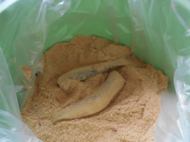 糠に塩と唐辛子輪切りにしたものを良く混ぜておきます。